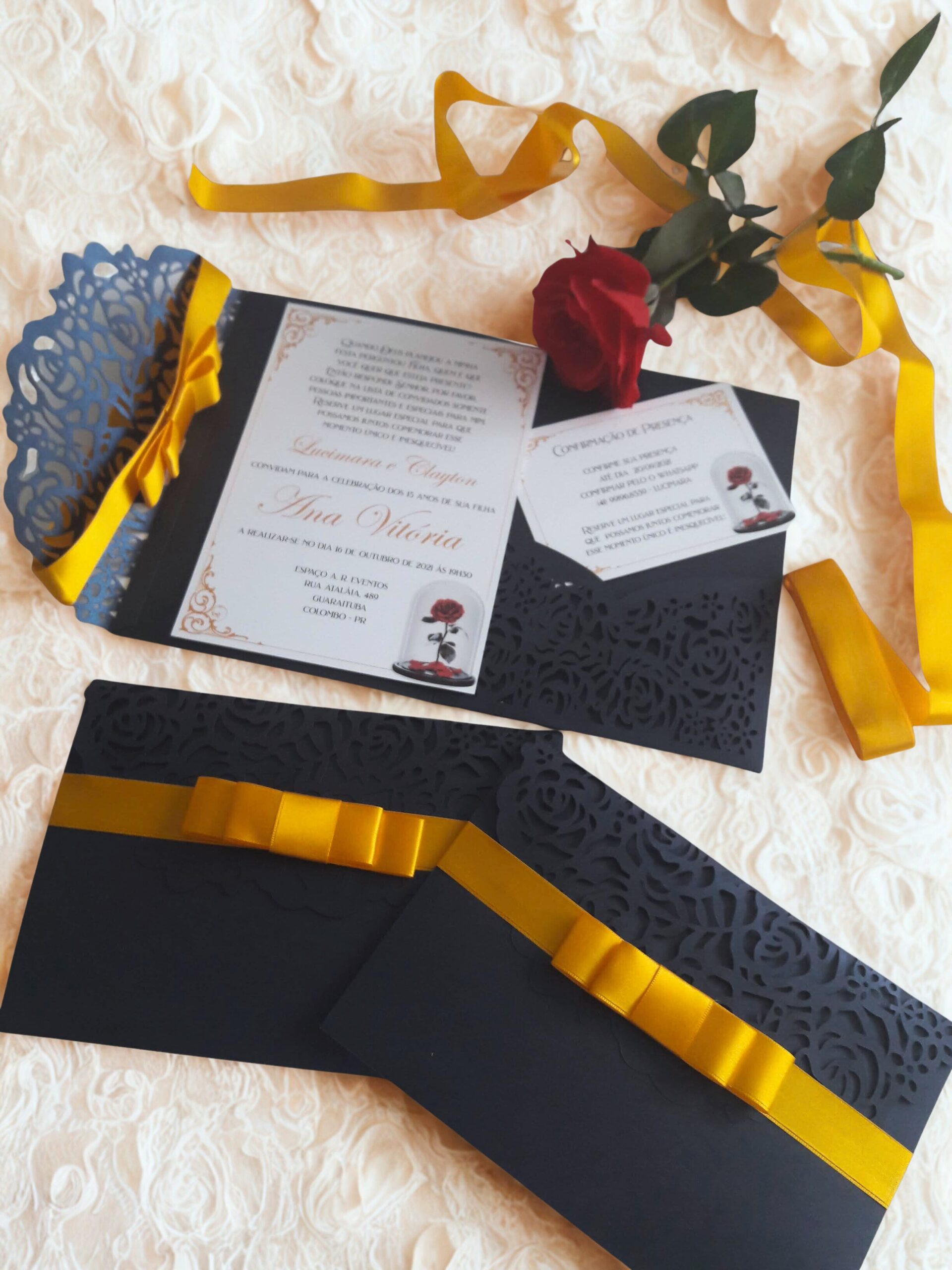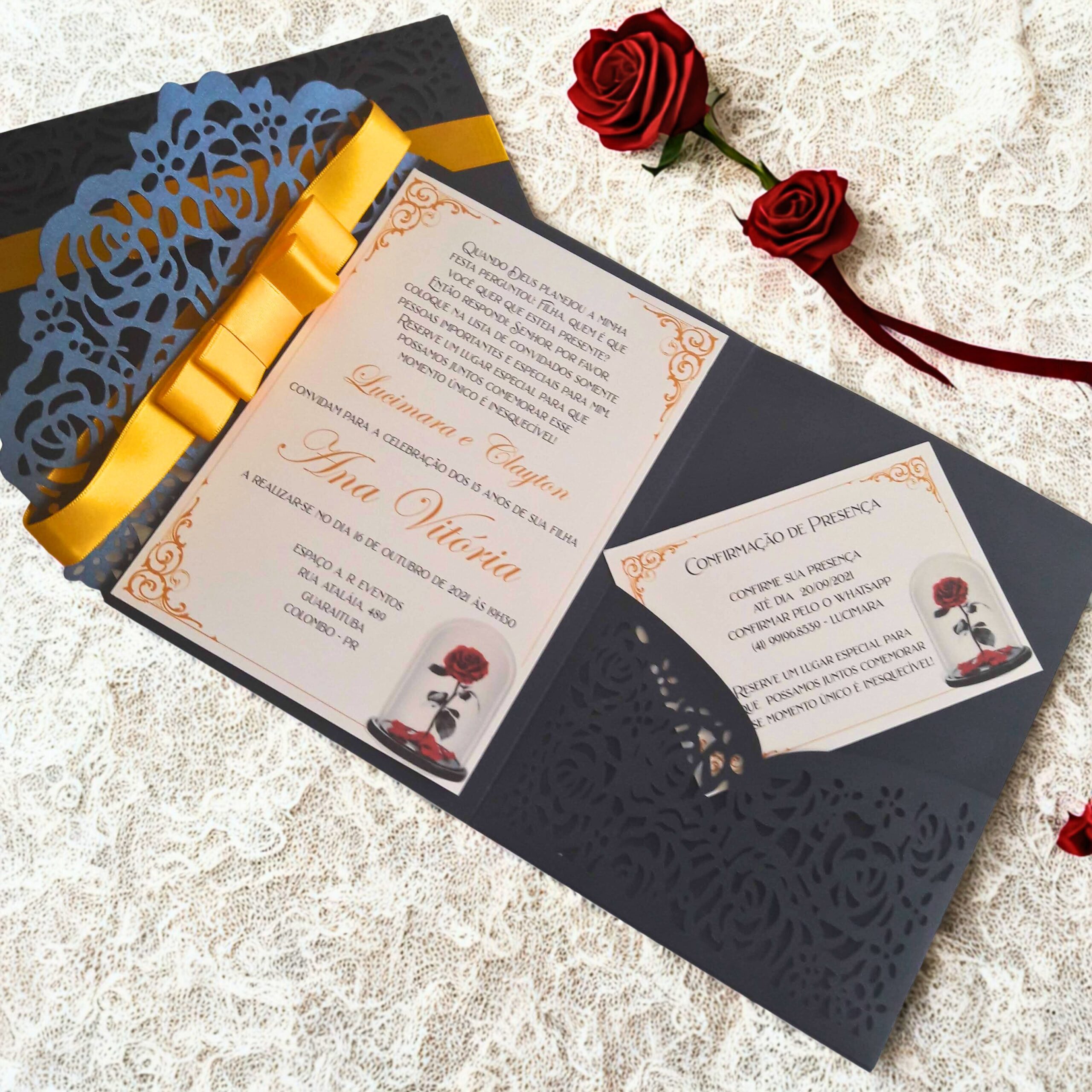 Convite a Bela e a Fera de 15 anos luxo , elegância e sofisticação para uma noite inesquecível.